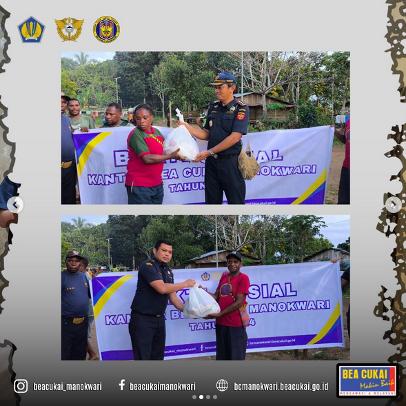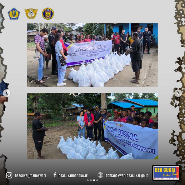 Manokwari, Desember 2024 - Kantor Pengawasan dan Pelayanan Bea dan Cukai Tipe Madya Pabean C Manokwari mengadakan acara bakti sosial di Kampung Baru Susweni, Manokwari. Acara dibuka dengan doa bersama yang dipimpin oleh tetua kampung dan diakhiri dengan pembagian bantuan secara simbolis oleh Kepala KPPBC Tipe Madya Pabean C Manokwari dan Kepala Subbagian Umum.